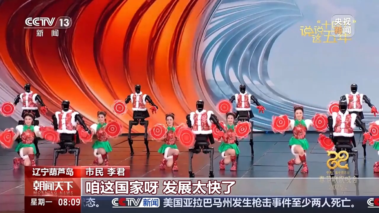市民李军:我们身边发生了很多变化。国家国防和科技事业快速发展。看今年的春晚,机器人做的手帕比人还灵活,我们国家发展很快。