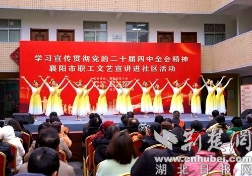 荆楚网(湖北日报网)讯(通讯员田玲、黄宇)12月23日下午,襄阳市职工文艺推介活动在樊城区邗江街道高庄社区举行。本次活动由襄阳市总工会、市艺术剧院主办。蓝光创新创业孵化园、社区工作者以及外卖、快递员等新业态工作者120余人参加。